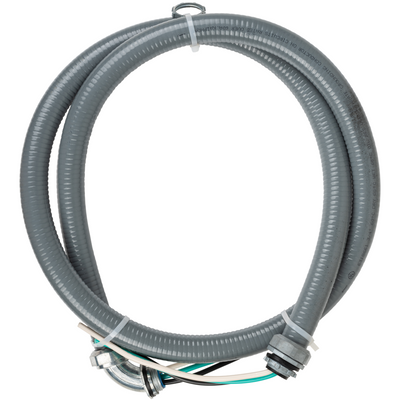 (3) conductors are included with the highly flexible conduit using 12 AWG THHN conductors. Kit Includes both standard 1/2 in. straight and 90° compression type fittings. The 6" wire leads are exposed at each end with 1/2" insulation stripped for hassle-free hook-ups. Cable model: 12 AWG Black, White, Green Single Solid Copper Core Wire